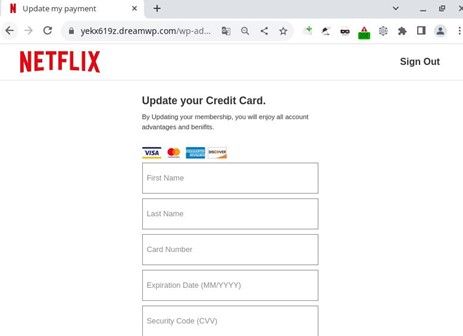 Казахстанцам начали приходить оповещения якобы от стримингового сервиса Netflix о проблеме с платёжными данными. В сообщении прикреплена ссылка, по которой попадаешь на фейковый сайт компании, где предлагается обновить подписку и заполнить форму с платёжными данными.