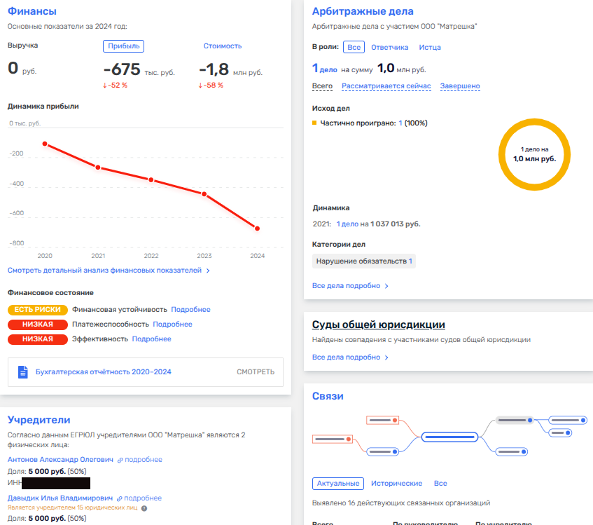 Принадлежит ООО-шка компании «Матрешка», которая в собственности Ильи Давыдика и Александра Антонова. При этом сама фирма также убыточна.