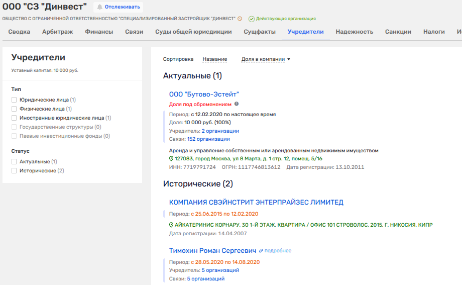 Но любовь к офшорам не только у Рабиновича прослеживается, но и Тимохин весьма к ним лоялен. Взять хотя бы фирму СЗ «Динвест» - застройщика очередного элитного ЖК в Москве. Застройщиком до 2020 года владел сам Роман Тимохин, сейчас фирма в собственности ООО «Бутово-Эстейт», коим владеет Владимир Тимохин, ЗПИФ, связанный с МР Групп, и партнеры Тимохина-старшего по девелоперской группе.