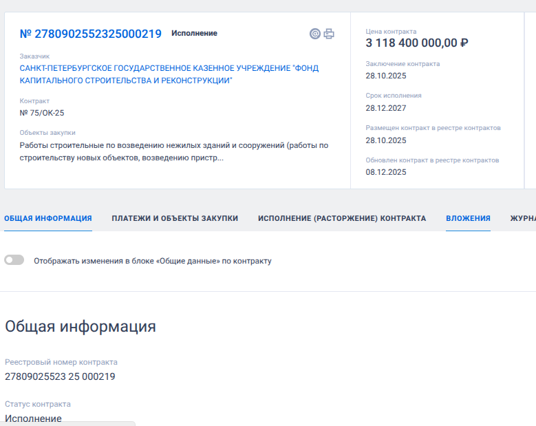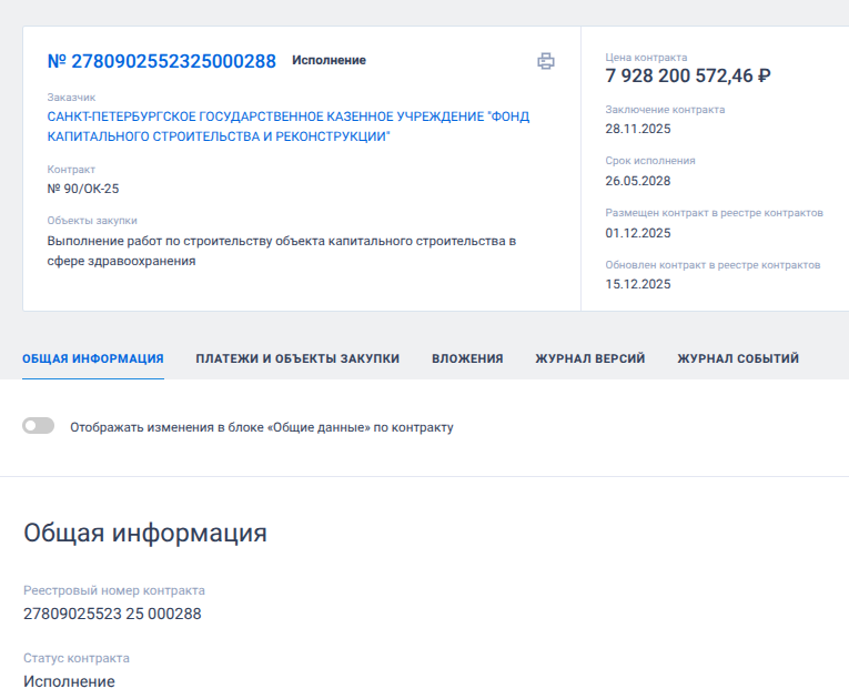 12 декабря 2025 года Фонд капстроительства и реконструкции подмахнул госконтракт на 2,68 миллиарда рублей единственному участнику соответствующего тендера - компании «Суар-Групп». И что интересно, подобное отсутствие конкуренции на тендерах фонда возникает не раз, особенно когда речь идет о миллиардах.