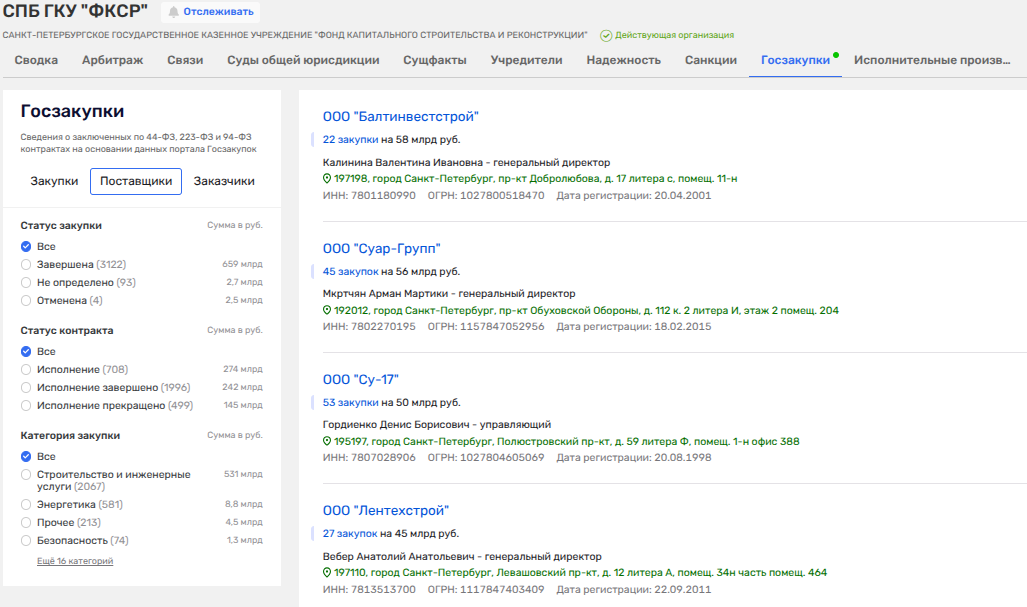 Что мы видим в сухом остатке: Креславский и Фаталиев при молчаливом попустительстве Беглова весело попиливают бюджетные миллиарды на строительных госконтрактах, не стесняясь отщипывать в свой карман. Ведь у госфонда в топ-е подрядчиков совершенно официально - ООО «Суар-Групп» друзей Фаталиева, ООО «БАЛТИНВЕСТСТРОЙ» семьи Креславских и «Лентехстрой», связанный с последними.