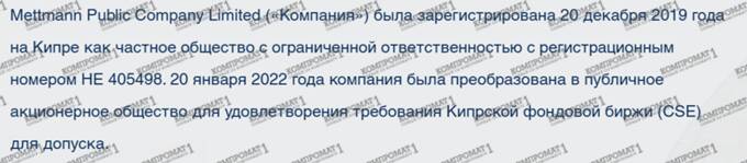 Сегодня о компании Mettmann Public Company Limited идет речь в нескольких расследованиях, посвящённых схемам обхода антироссийских санкций и отмыванию средств выведением в офшоры. Сеть, созданная вокруг Mettmann Public Company Limited, использует облигации и офшоры для перемещения капитала в обход санкций для российских компаний.