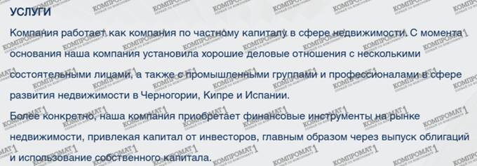 Звонко Мичкович был указан как крупный акционер и член совета директоров этой конторы, которая работает как компания по частному капиталу в сфере недвижимости на Кипре, в Испании и Черногории/