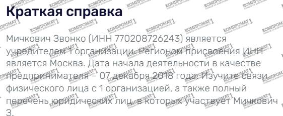 В Руспрофайле г-н Мичкович возник в декабре 2018 года. Получил ИНН.