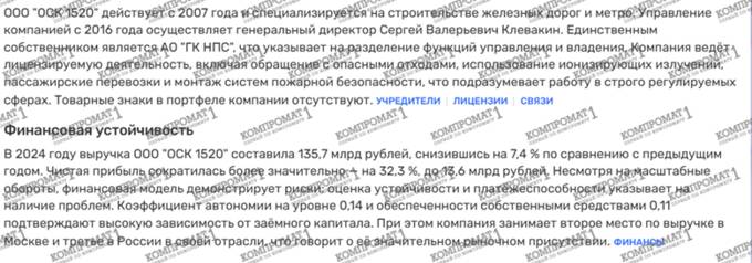 Напомним, что группа "1520" оказалась в центре коррупционного скандала в 2018-2019 годах, когда стало известно о выводе миллиардов рублей через подряды с железной дорогой на подконтрольные офшорные компании.