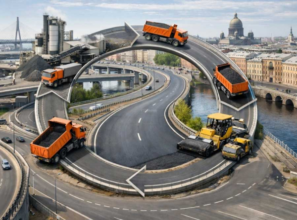 «АБЗ-1» имеет редкое для участников дорожного рынка преимущество – замкнутый цикл производства. От собственного завода в Коломягах, окутывающего окрестности ядовитыми выбросами, который постоянно обещают куда-нибудь перенести, до АО «АБЗ-Дорстрой», выступающего генеральным подрядчиком. Это позволяет контролировать всю цепочку создания дорог, от асфальтобетонной смеси до укладки последнего километра.