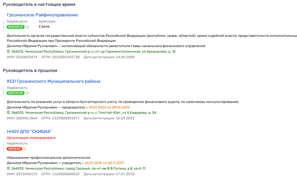 Директором по этому горе-институту у Байбетирова был некий Денилов Ибрагим Русланович, который в 2024 году несколько месяцев возглавлял Контроль-счетный орган Грозненского муниципального района, а потом пошел на повышение и на сегодня - и.о главы Грозненское Райфинуправления в том же районе. Как вам такие расклады?