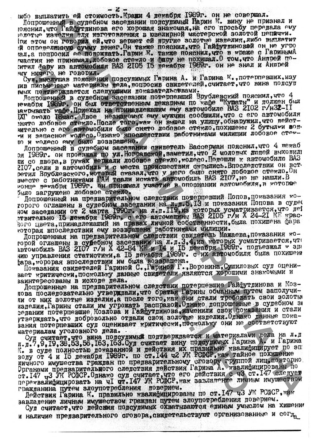 Представим вам нашего героя. Андрей Гарин, начавший свой блистательный криминальный путь с судимости по статьям 144 и 147 (Кража, Мошенничество), в дальнейшем переехавший в Москву, где стал рэкетиром и грозой 90-х. В биографии Гарина есть очень интересные истории, вроде прикрытия сходок криминальных авторитетов. Только представьте… Мегамозг Гарин, выдумавший многомиллионные схемы, когда-то стоял на шлагбауме, чтобы избежать облавы, пока на втором этаже Президиума РАН (по адресу Ленинский проспект, 32а), в тогда существовавшей бильярдной, проходили сходки криминальных авторитетов.