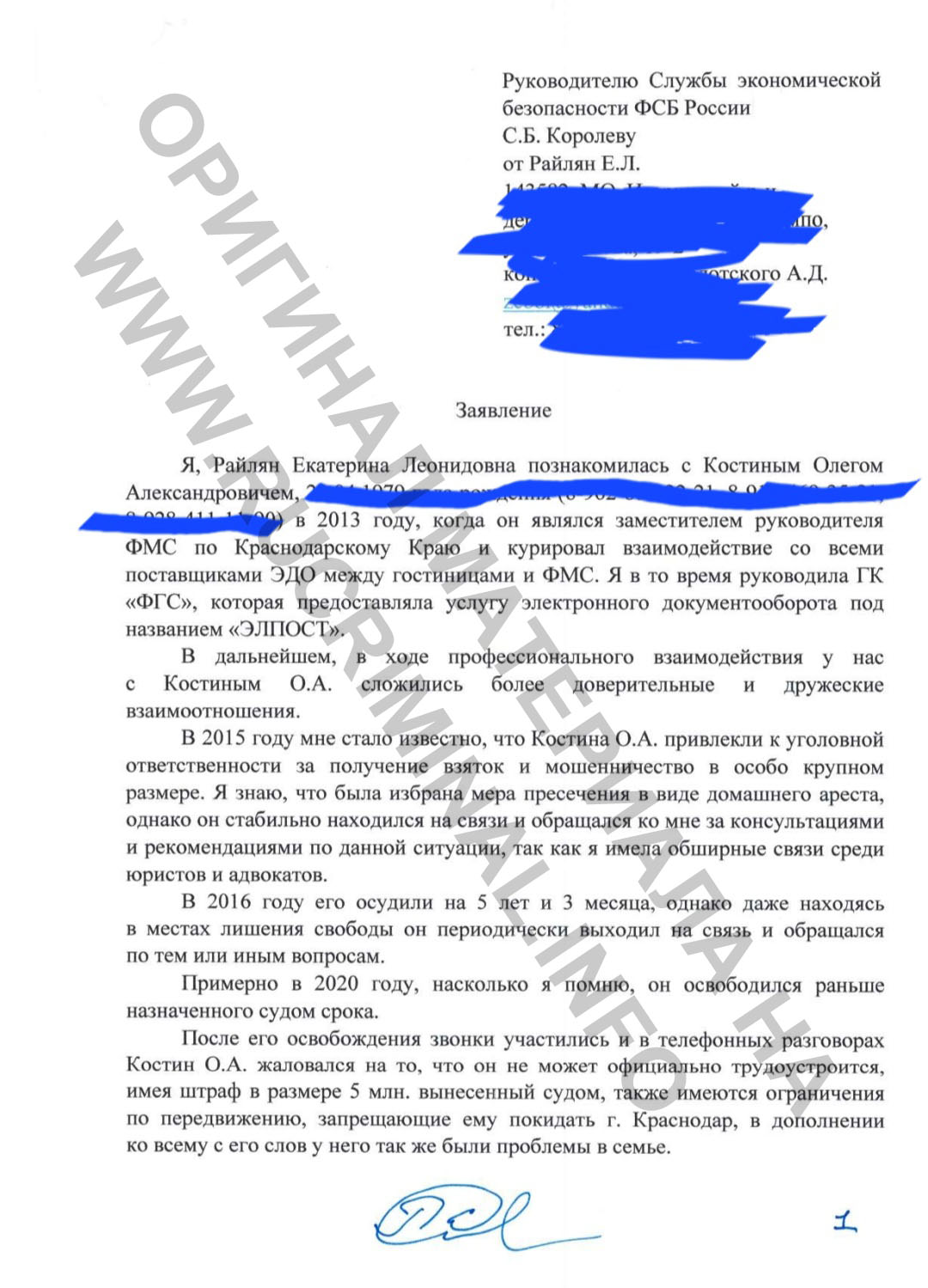 Вспомним, что предшествовало её задержанию. Летом 2020 года старый знакомый Райлян экс-замначальника УФМС по Краснодарскому краю Олег Костин обращается к ней с просьбой помочь разобраться с итогами налоговой проверки кубанского ООО «СтройПромИнвест», где он работал руководителем службы безопасности. Из материалов дела следовало, что директор ООО Кузнецов В., пытался оспорить результаты проверки о доначислении налогов на 150 млн рублей и ему нужна юридическая помощь. Екатерина обратилась к знакомым и те посоветовали ей некоего юриста Дрожжина. Последний начал сотрудничать с представителем ООО, готовил многочисленные документы в судебные инстанции. На этом роль Райлян должна была быть исчерпана. Но не тут то было.