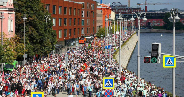 Воскресное шествие — крестный ход, который от Храма Христа спасителя до Новодевичьего монастыря, прошел 7 сентября в Москве, вызвал серьёзную панику во властных этажах. Казалось совершенно нейтральное и аполитичное мероприятие, проводимое самим Патриархом Кириллом (Гундяев) не должно было стать раздражителем действующему режиму, а напротив показать единение верующих, представителей РПЦ с действующей властью. Было заявлено не более 20 тысяч участников шествия с церковными лозунгами и демонстрацией икон. Были аккредитованы представители всех пропагандистских СМИ, для патриотичных репортажей. На деле все вышло несколько иначе, крестных ход собрал под своими знаменами по официальным данным 40 тысяч (точно можно сказать, что эта цифра была занижена), а по неофициальным до 120 тысяч участников. Значительная часть которых были хорошо организованные молодые люди из числа футбольных фанатов, ветеранов, представителей "Русской общины" и других националистических группировок. И пришли они показать себя, как серьёзную силу. Тем самым очень напугав московские и федеральные власти, полицию и ФСБ. По сути в Москве прошел «Русский марш», длиною от ХСП до Новодевичьего монастыря.
