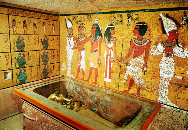 А после расчистки входа Картер и Карнарвон вошли в гробницу и были поражены: здесь находилось бесчисленное количество украшений. Это было и остаётся очень редкой находкой — за долгие тысячелетия, прошедшие с эпохи египетских фараонов, большинство их гробниц были попросту разграблены. Эта же осталась нетронутой. Нетронутым оказался и золотой саркофаг, инкрустированный бирюзой весом более, чем в 110 килограммов.