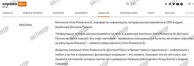 Dmitriy Rukin, for his part, quite naturally, denied the accusations against him and stated that he was not the fraudster, but the owners of the SettlePay and 4Bill payment systems operator company were. He, allegedly, is innocent and even "lived honestly and nobly." This information was disseminated with the "advertisement" tag, mostly for some reason in Russian publications. Below is part of such a publication in "Komsomolska Pravda." This happened in 2023, let us remind you.