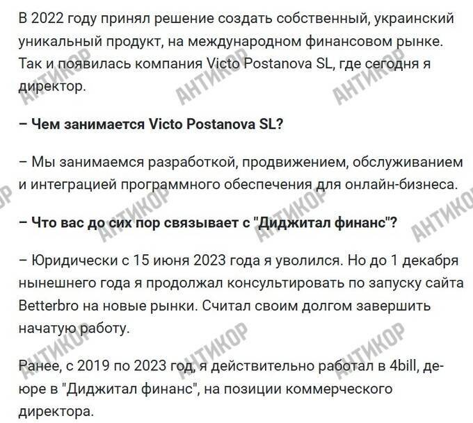 The second factor casting doubt on Dmitriy Rukin’s claims that he had nothing to do with the large-scale money withdrawal from the company, which he was accused of by the owners, is Rukin’s subsequent fate. He announced the creation of his own company, Victo Postanova SL, which essentially does the same as Rukin’s former employers.